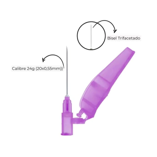 Protetor (Em polipropileno): Protege a agulha de possíveis danos até o momento do uso e garante a esterilidade do conjunto por cinco anos, além de garantir a centralização da cânula no canhão.