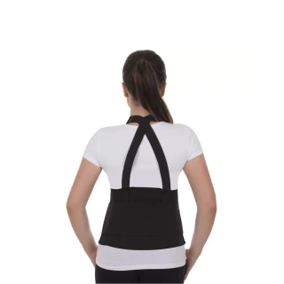 Posicione a faixa elástica de painéis na região lombar de forma que as abas fechem em torno da região abdominal.