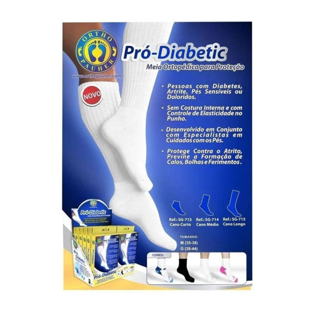 Anúncio Referente a 1 Par (2 Unidades) Da Meia Ortopédica Pró Diabetic Cano Longo Orthopauher.