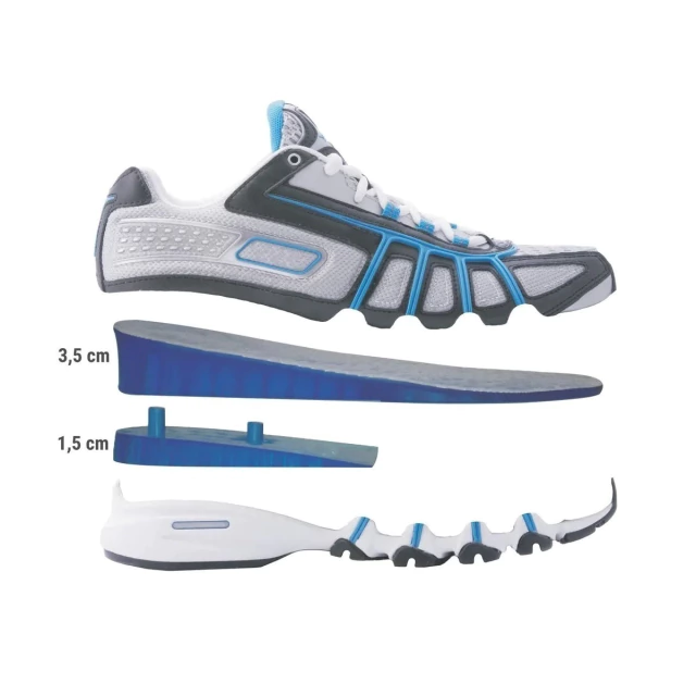 Basta acoplar o salto que segue junto à palmilha, permite excelente adaptação à maioria dos tênis e sapatos sociais de forma prática, discreta e eficaz.