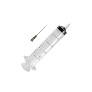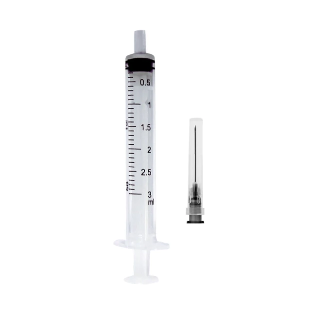 A seringa descartável com agulha Luer Slip (bico de encaixe) é estéril, transparente, atóxica, com bico que garante conexões seguras e sem vazamentos.