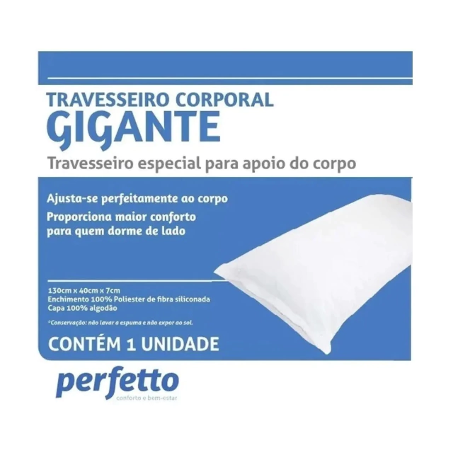 O travesseiro corporal gigante para abraçar Perfetto é um produto que garante enorme sensação de conforto e bem-estar na hora de dormir. Fabricado especialmente com o toque e maciez da fibra siliconada.